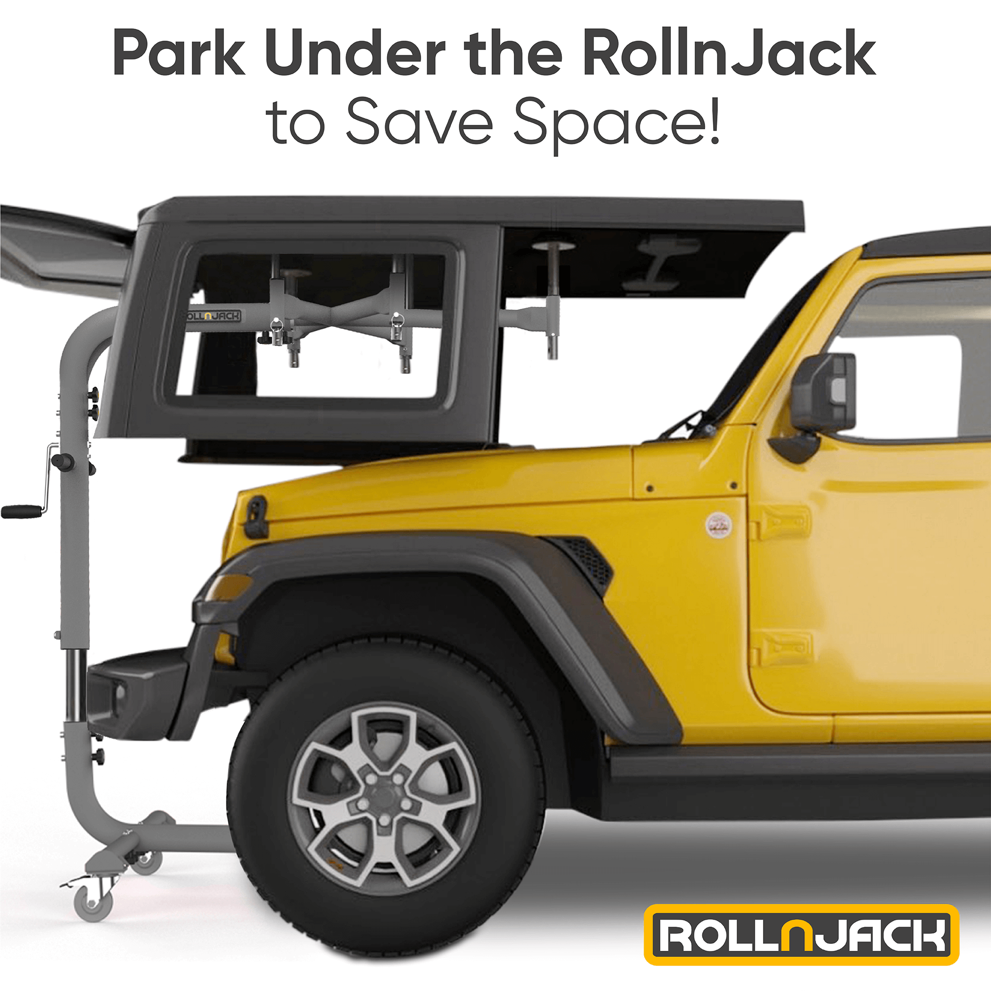 Secure & Efficient Storage - The RollnJack Lift allows you to park right under it and save space. In addition, your hardtop is securely held by the RollnJack.