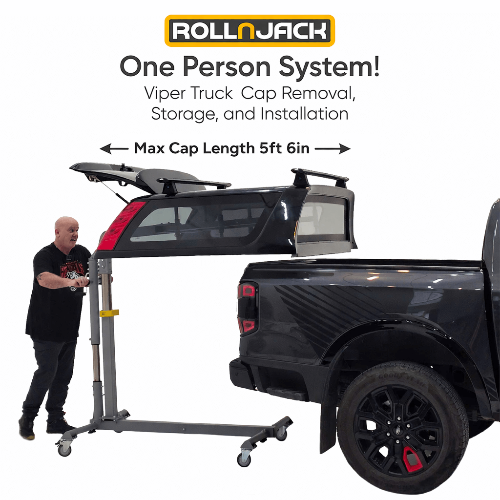 The Viper is RollnJack's newest product for truck cap removal, installation, and storage. The Viper accommodates most trucks and cap types. Please see pictures for dimensions/measurements